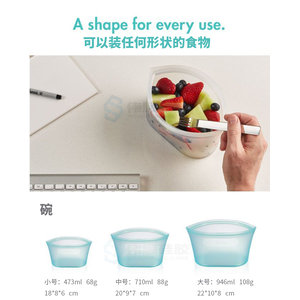 1、食品級硅膠材質(zhì)制作,可以裝任何形狀的食物,可以和食物直接接觸