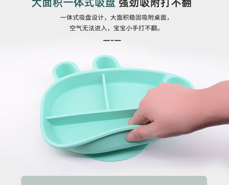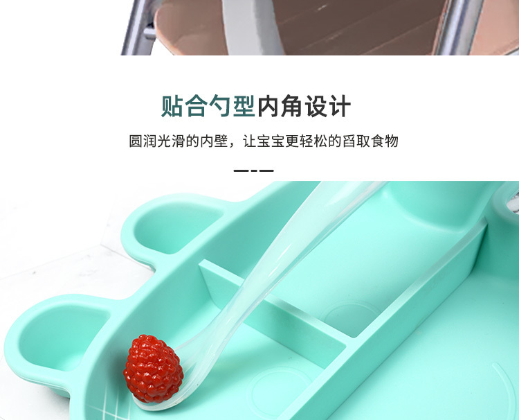 3、觸感舒適,易握防滑,柔軟硅膠材質,防滑防燙設計,寶寶吃飯更安全